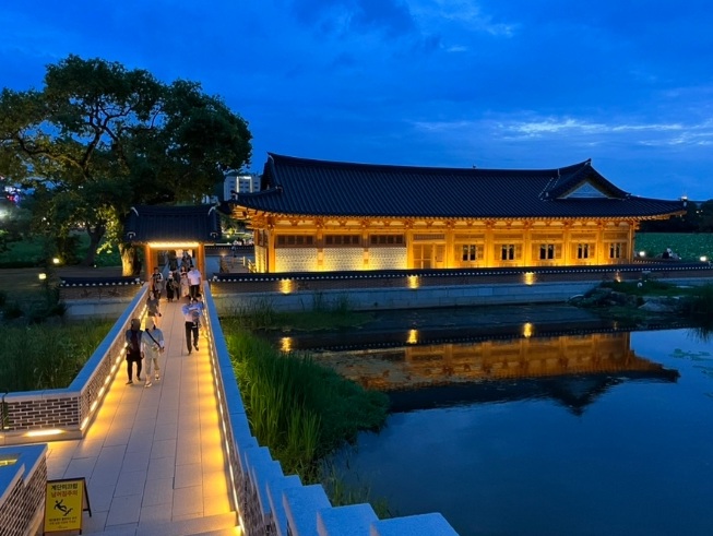 새로 조성한 한옥과 주변 경관이 잘 어우러집니다.
